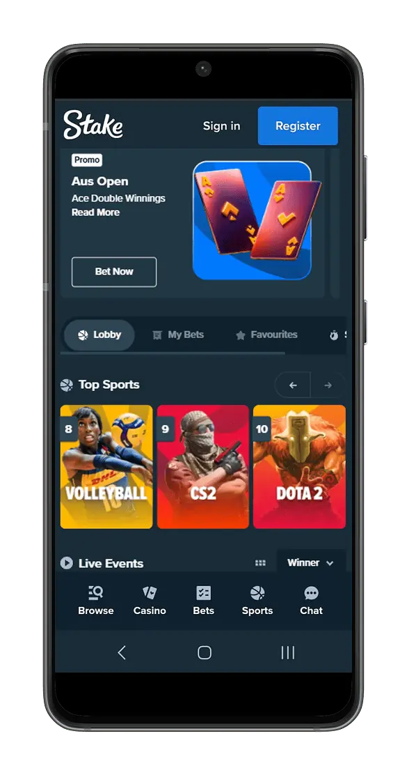 The Stake app for Android supports devices with Android 7.0 or higher. Recommended free storage is at least 100 MB. Stable internet, either 4G or Wi-Fi, ensures uninterrupted live casino streaming and sportsbook access.